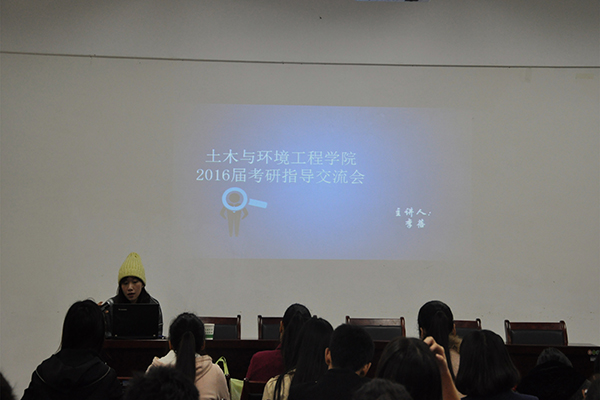 接着李蓓老师梳理了考研全年的流程,从专业和院校选择,各个科目复习准备的侧重点,初试结束后复试如何准备与调剂等方面展开了详细的解析。最后,李蓓老师表示,在同学们考研过程中,土木学院全体领导与教师都会尽全力给予帮助和支持,希望同学们树立信心,把握机会,认真准备,争取取得优异的成绩,并祝愿每位同学都能梦想成真,进入理想的高校深造。