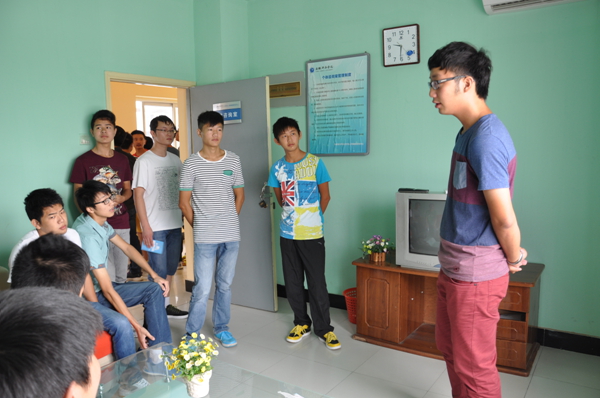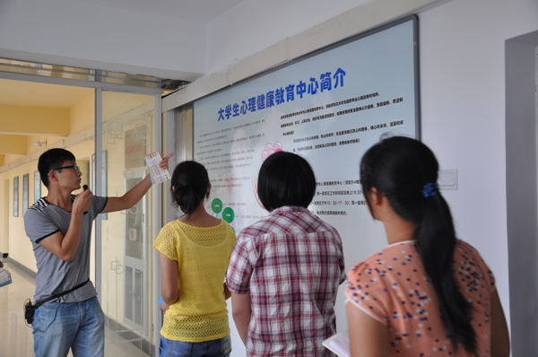 4日上午安排的是熟悉校园,主要分为三个部分:参观教学区和办公区,让学生熟悉学院的布局,便于以后和相应的老师进行交流;参观实验室,了解学院办学实力,增强对自己专业的了解;参观心理中心,让新生入学的第一天就有心理介入,了解心理中心,认同心理中心,给予学生正确引导,培养学生健康成长。