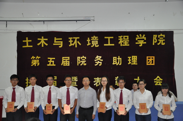 本网讯(通讯员 赵璐)2013年10月11日中午,土木与环境工程学院院务助理团第五届换届暨表彰大会在教学1号楼316阶教隆重举行。院长方达宪教授、行政院长计勇、行政秘书俞士毛、教学秘书罗月颖、团总支书记刘波出席本次大会,各社团组织嘉宾应邀参加,助理团全体成员参加了本次大会。