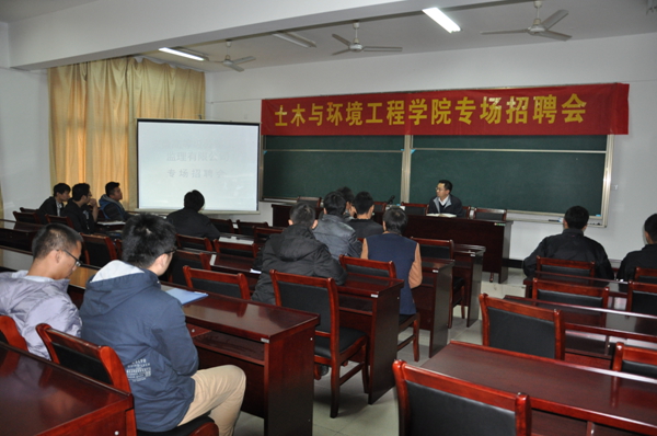 本网讯(通讯员 俞士毛)为进一步搭建2014届毕业生就业服务平台,扎实推进就业工作,使之真正落到实处,取得实效。土木学院高度重视,提前谋划,周密安排,采取走出去,请进来策略,积极为毕业生搭建就业平台。11月18日-23日,土木与环境工程学院举办了2013年招聘周活动。