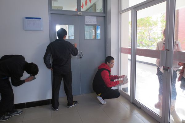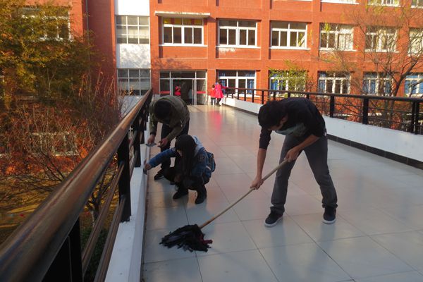 本次清洁,主要是针对门窗玻璃、墙壁污渍、地面胶印等。为了达到最佳效果,学院提前做了充分的组织工作。每层楼、每个区域责任到人,分片包干;提前要求同学们带好报纸、清洁刷等工具。虽然当天天气寒冷,气温已经处在零下,但是大家干得热火朝天,经过2个多小时的努力工作,整个教学楼焕然一新。
