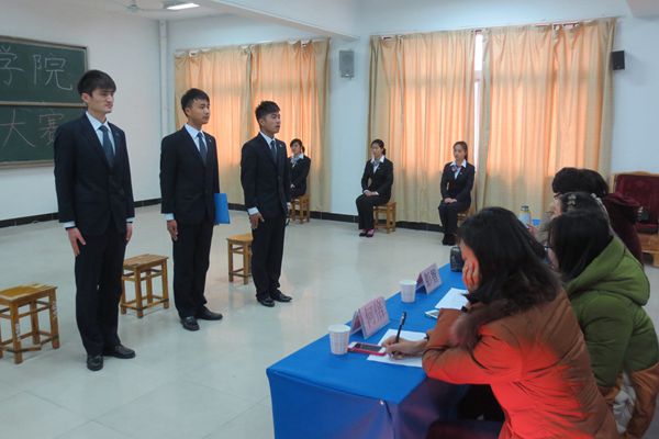 本次礼仪风采大赛由初赛、决赛两个部分组成,主要从“服装礼仪”、“礼仪展示”和“礼仪知识问答”三方面对选手进行评比。在给定的标准下,选手们穿上挺括的西服,精神焕发,信心十足。大家依次进场展示、介绍自我,虽然简短,但是每组都有独特的表现,给评委们留下了深刻的印象。在礼仪展示环节,各组选手展示了各种站姿、坐姿、蹲姿和步行等各种礼仪姿态,内容丰富全面,充分展现了当代大学生的文明礼仪素养。其中更部分参赛队通过话剧、小品等形式,将正面的礼仪展示和反面对比有效结合起来,在展示礼仪素养的同时,寓教于乐,颇有教育意义。在礼仪知识问答环节,通过随机抽题,选手们须回答有关文明礼貌用语、电话礼仪、校园礼仪、家庭礼仪、公共场所礼仪、待客礼仪等等各方面知识,全面考核选手的礼仪知识掌握程度。评委还进行现场点评,也给观众上了一堂精彩的礼仪课。