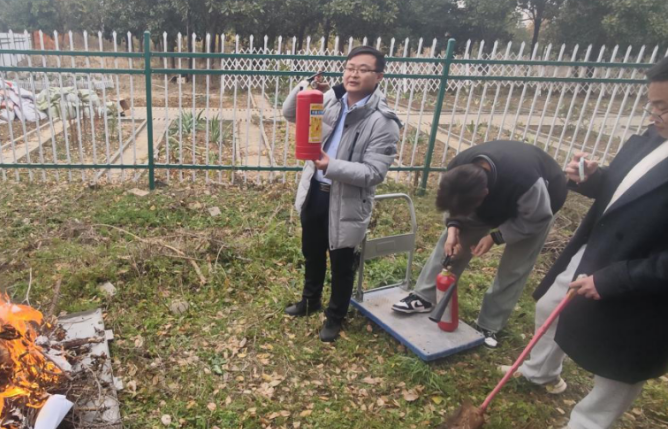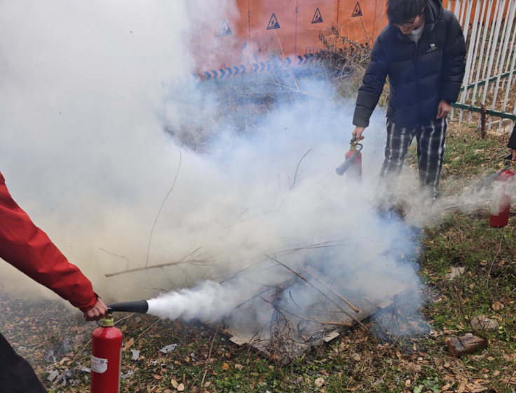 理论学习结束后,演练进入实操环节,现场设置了模拟火灾点与消防器材操作区。实验实训主管首先手持灭火器,详细拆解“提、拔、握、压”的使用步骤,结合实物演示灭火器的正确握持姿势与喷射角度,特别强调 “需站在上风向,对准火焰根部喷射”的关键要领。整个演练过程井然有序,从知识学习到实操体验,学生们始终保持高度专注。